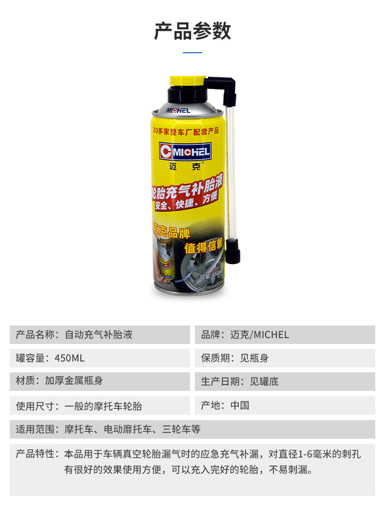 迈克自动充气补胎液-摩托车专用型