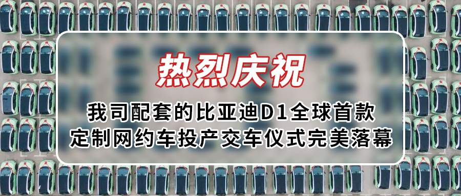 热烈庆祝 | 我司配套的比亚迪D1全球首款定制网约车投产交车仪式完美落幕近日,由比亚迪与滴滴出行联合打造的全球首款定制网约车D1正式投产,首批新车交付仪式于长沙市比亚迪汽车有限公司隆重举行。湖南省长沙市市长郑建新先生、比亚迪董事长兼总裁王传福先生、滴滴出行副总裁杨峻先生、亚滴集团总经理谢刚义先生等领导和嘉宾,共同出席仪式现场。作为第一代定制化的共享智能汽车,D1将正式与公众见面,为网约车出行提供服务。 首批D1车型将率先在长沙投入运营,随后陆续推广到全国。预计年产量10万辆以上,新增产值超100亿元。 交车仪式上,郑建新市长亲自将第一台D1网约车的钥匙,交...