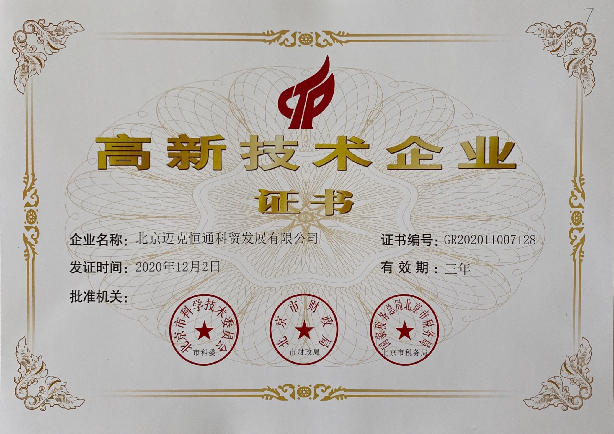 国家高新技术企业的称号,是对一个企业是否拥有核心自主知识产权最有力的证明,也是对我司在技术创新、高端技术开发,高科技人才培养等各项工作最直接的肯定。它是一个难得的国家级的资质认证,其品牌影响力不次于中国驰名商标、国家免检产品。